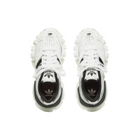 adidas Track Forum Low Top Sneaker in white and black technical material is done in collaboration with adidas. PRODUCT DETAILS • Technical material • Sneaker • Written size at the edge of the toe • BB embossed on front of the outsole • Trefoil and adidas logos embossed on the exterior • Balenciaga logo printed on the exterior • Trefoil and adidas logos on the tongue • Contrasting 3-Stripes mark on each side • Double laces knotted • Dynamic sole design with an augmented back for more comfort • adidas® collaboration • The Trefoil logo, the 3-Bars logo and the 3-Stripes mark are registered trademarks of adidas. FORUM is a trade mark of adidas. • Made in China • Wipe with a soft cloth Material: 100% polyurethane