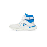 adidas Track Forum Sneaker in white and blue technical material is done in collaboration with adidas. PRODUCT DETAILS • Technical material • Sneaker • Written size at the edge of the toe • BB embossed on front of the outsole • Trefoil and adidas logos embossed on the exterior • Balenciaga logo printed on the exterior • Trefoil and adidas logos on the tongue • Contrasting 3-Stripes mark on each side • Double laces knotted with hook and loop strap • Dynamic sole design with an augmented back for more comfort • adidas® collaboration • The Trefoil logo, the 3-Bars logo and the 3-Stripes mark are registered trademarks of adidas • Made in China • Wipe with a soft cloth Material: 100% polyurethane