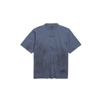 Balenciaga Back T-Shirt Medium Fit in faded dark blue painted dry jersey PRODUCT DETAILS • Painted dry jersey • Crewneck • Short sleeves • Balenciaga Back artwork embroidered at front and back • Made in Portugal Main material: 100% cotton