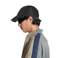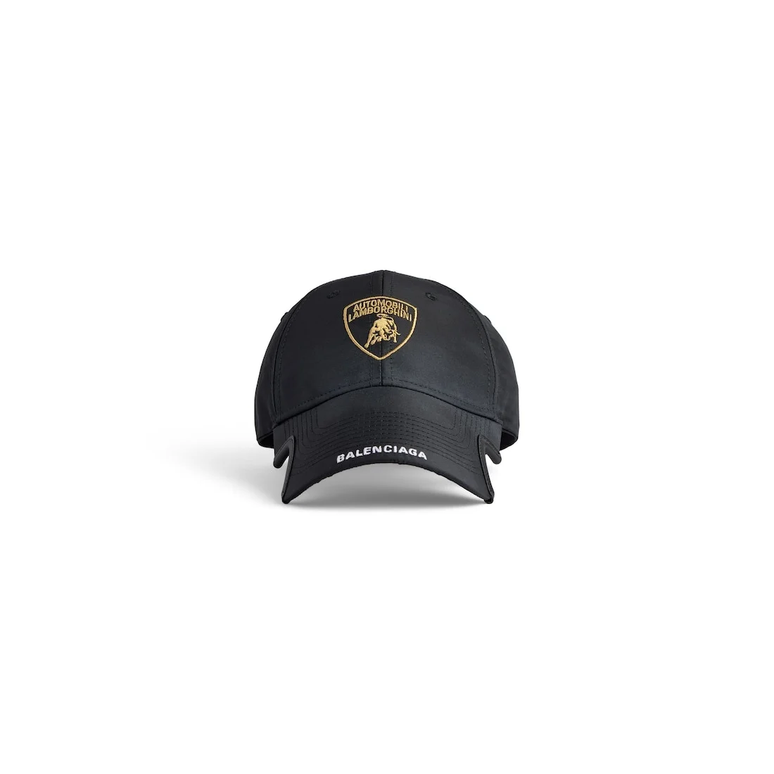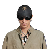 Balenciaga I Automobili Lamborghini Cap in black cotton drill PRODUCT DETAILS • Cotton drill • Classic baseball cap shape • Ventilation eyelets embroidered on top • Adjustable hook and loop tab at back • Visor cut out on both sides • Lamborghini Shield artwork embroidered at front • Designed by Balenciaga for Automobili Lamborghini • In collaboration with Automobili Lamborghini • Made in Italy Main material: 100% cotton