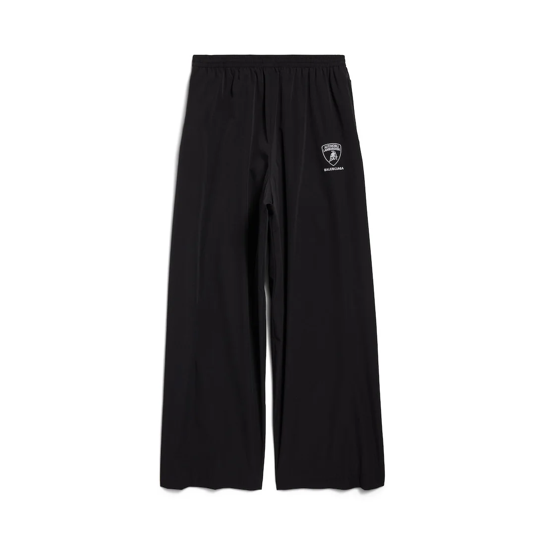 Balenciaga I Automobili Lamborghini Tracksuit Pants in black technical fabric PRODUCT DETAILS • Technical polyester • Mid-waist • Elasticated waistband • 2 zipped slash pockets • Automoboli Lamborghini artwork embroidered at left leg • Designed by Balenciaga for Automobili Lamborghini • In collaboration with Automobili Lamborghini • Made in Italy Main material: 100% polyester