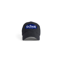 Balenciaga I Scholl Cap in black cotton drill PRODUCT DETAILS • Cotton drill • Classic baseball cap shape • Ventilation eyelets embroidered on top • Adjustable hook and loop tab at back • Scholl artwork at front • In collaboration with Scholl • Made in Italy Main material: 100% cotton