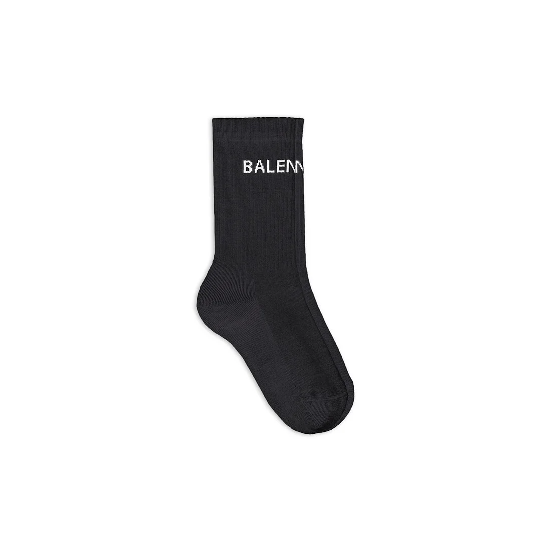 Balenciaga Logo Socks in black and white printed sponge PRODUCT DETAILS • Cotton blend • High socks • Breathable fabric • Balenciaga logo at the top of the ankle • Finishes in ribs • Made in Portugal • Cold machine wash Material: 80% cotton, 18% polyamide, 2% elastan