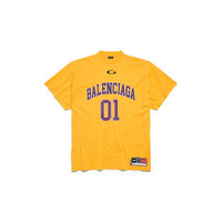 Basketball Oversized T-Shirt in yellow and deep purple dry jersey PRODUCT DETAILS • Dry jersey • Crewneck • Short sleeves • Basketball artworks embroidered at front and back • Made in Portugal Main material: 100% cotton