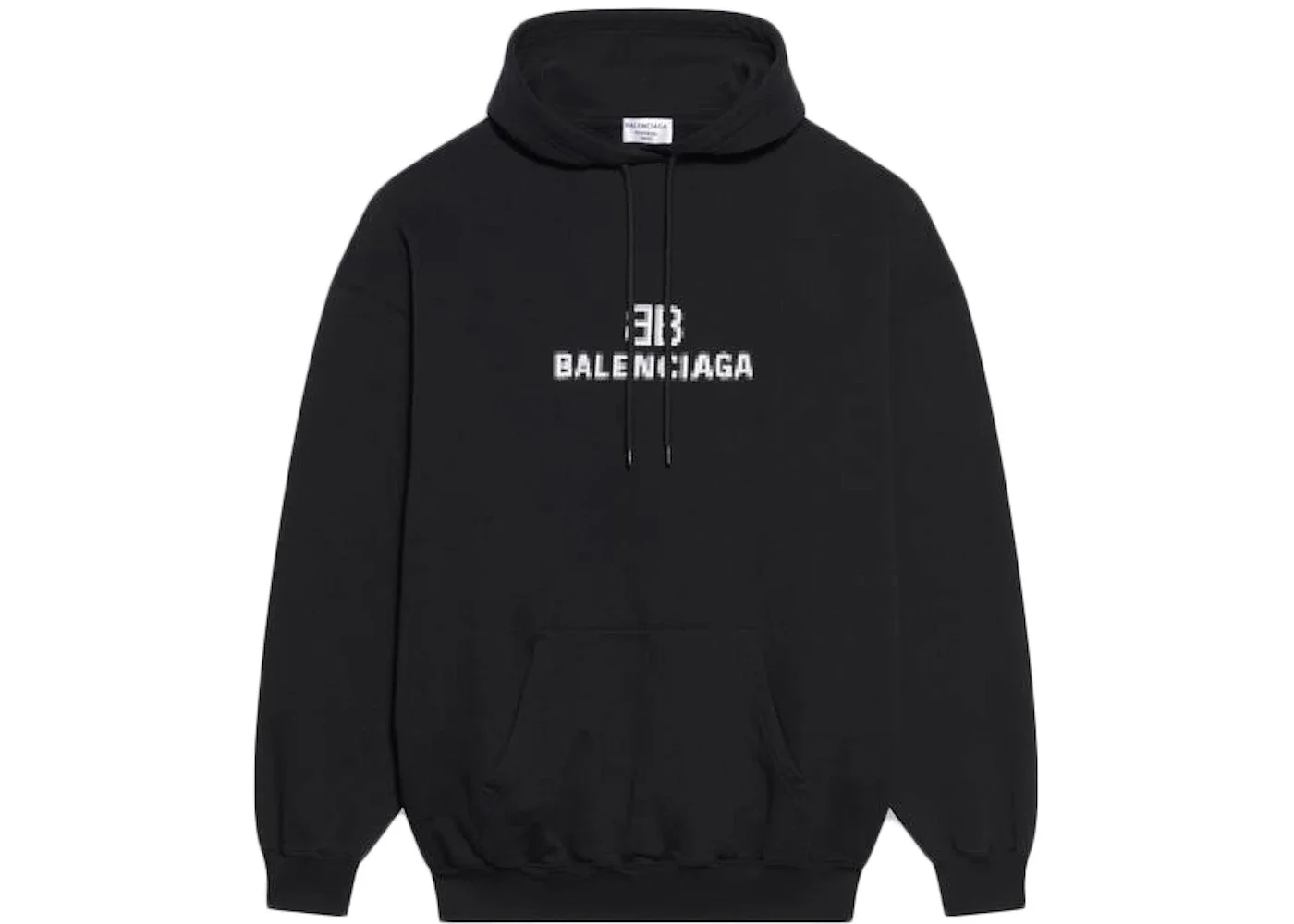 BB Pixel Medium Fit Hoodie in black and white medium fleece PRODUCT DETAILS • Medium fleece • Medium fit • Hood with drawstring • 1 Kangaroo pocket at front • BB pixel artwork printed at front • Made in Portugal • Cold wash machine • Model is 187 cm / 6'2'' and is wearing a FR size S Material: 100% cotton