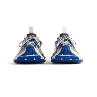 Cargo Sneaker in grey, white and blue microfiber and mesh PRODUCT DETAILS • Sneaker • Leather free • Oversized volume, less exaggerated as on the Summer 24 Show • Worn-out effect • Microfiber and mesh • Reflective details on the upper • Balenciaga logo on the outsole and at back • Balenciaga logo embroidered on the tongue • Metallic plate with logo engraved on the upper • 3B sports icon artwork embossed on each side • Unity sports icon artwork on the upper and on sole • Shoe size at the edge of the toe and at back • Back and tongue pull-on tab • 1 additional pair of laces included • Made in China • Wipe with a soft cloth Material: 50% polyurethane, 30% polyester, 20% nylon