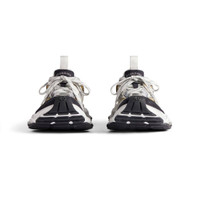 Cargo Sneaker in white and grey microfiber and mesh PRODUCT DETAILS • Sneaker • Leather free • Oversized volume, less exaggerated as on the Summer 24 Show • Worn-out effect • Microfiber and mesh • Reflective details on the upper • Balenciaga logo on the outsole and at back • Balenciaga logo embroidered on the tongue • Metallic plate with logo engraved on the upper • 3B sports icon artwork embossed on each side • Unity sports icon artwork on the upper and on sole • Shoe size at the edge of the toe and at back • Back and tongue pull-on tab • 1 additional pair of laces included • Made in China • Wipe with a soft cloth Material: 50% polyurethane, 30% polyester, 20% nylon