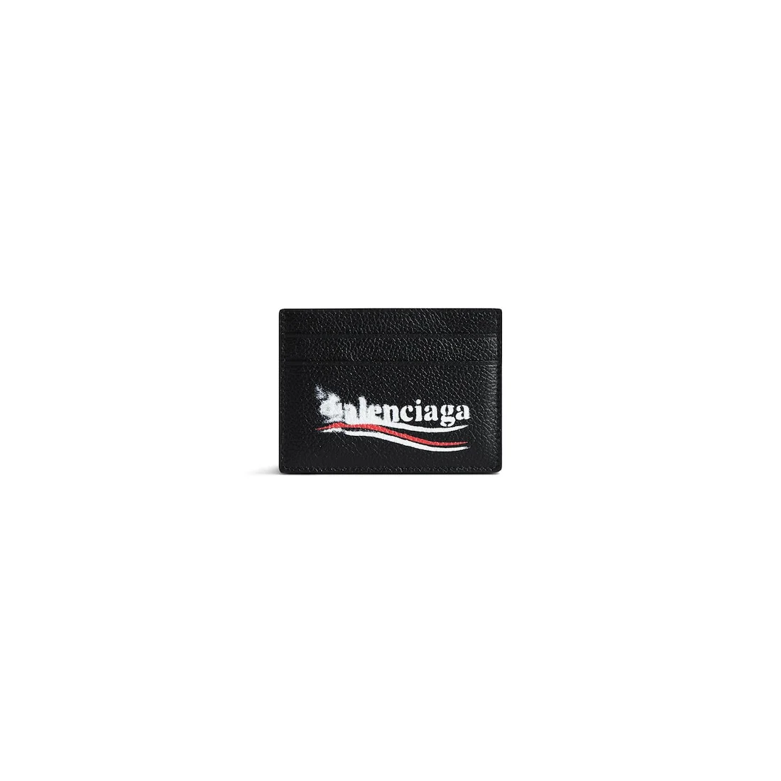 Cash Card Holder in black grained calfskin PRODUCT DETAILS • Dimensions: L3,9 x H2,9 x W0,4 inch • Grained calfskin • Card holder • Political stencil logo printed at front • 4 card slots • 1 bill pocket • Made in Italy Material: calfskin