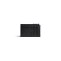 Cash Large Long Coin And Card Holder in black grained calfskin PRODUCT DETAILS • Dimensions: L5,3 x H2,7 x W0,7 inch • Grained calfskin • Large long coin and card holder • Political stencil logo printed at front • Semi-shiny palladium hardware • 1 zipped coin pouch • 1 receipt compartment • 5 card slots • Made in Italy Material: calfskin