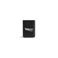 Cash Magnet Card Holder in black grained calfskin PRODUCT DETAILS • Dimensions: L2,6 x H3,7 x W0,2 inch • Grained calfskin • Card holder to attach to the back of the phone • Political stencil logo printed at front • 2 card slots • Made in Italy Material: calfskin