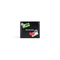 Cash Square Folded Wallet in black Arena lambskin with multicolor printed stickers PRODUCT DETAILS • Dimensions: L4,3 x H3,7 x W1,1 inch • Arena lambskin with printed stickers • Square folded wallet • Balenciaga logo printed at front • 8 card slots • 2 bill pockets • 2 receipt compartments • Made in Italy Material: lambskin
