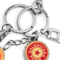 Charm/Keychain Beer Caps in aged-silver and multicolor brass, steel, iron and zamak PRODUCT DETAILS • Steel, brass, iron and zamak • Keychain • Balenciaga and BB logo engraved • Aged-silver hardware • 1 snapped hook • Two split rings with charms • Can be attached to the bag or be used as a keychain • Made in Italy Material: steel, brass, iron and zamak