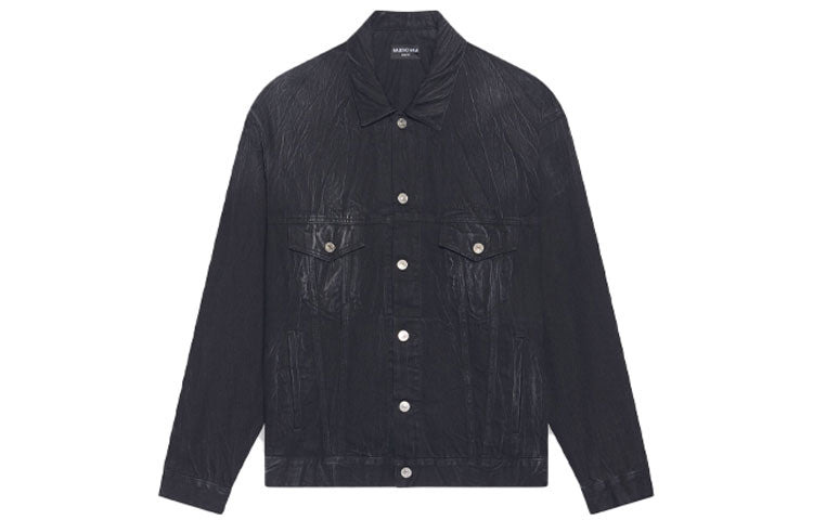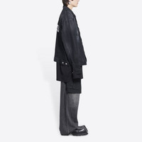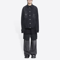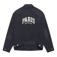 Cities Paris Jacket Large Fit in black Japanese denim PRODUCT DETAILS • Japanese denim • Unifit • Large fit • 6 button front • 2 buttoned pockets at chest • 2 slash pockets • Buttoned at cuffs • Adjustable buttoning at waist • Balenciaga engraved flex buttons • Cities logo embroidered at back • Made in Italy • Dry cleaning • The model is wearing a size S Material: 100% cotton
