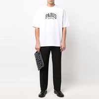 Cities Paris T-Shirt Medium Fit in white and black vintage jersey PRODUCT DETAILS • Vintage jersey • This item is unisex • Medium fit • Crewneck • Cities logo printed at front • Made in Portugal • Cold machine wash • The Model is wearing a FR size S Material: 100% cotton