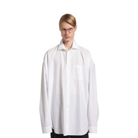 Cocoon Shirt in white poplin PRODUCT DETAILS • Poplin • Cocoon fit • Button-down collar • Dropped shoulder • 7 button front • 1 patch pocket at chest • Long sleeves • Buttoned cuffs • Rounded bottom • Balenciaga engraved buttons • Made in France • Dry cleaning • Model is 185 cm / 6'1'' and is wearing a size 38 Material: 100% cotton