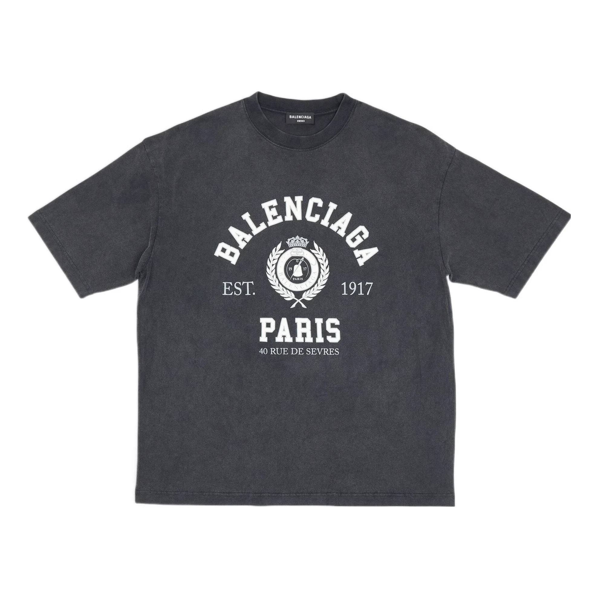 Balenciaga Varsity Logo Short Sleeve T-Shirt 'Washed Black' 612966TMV981000