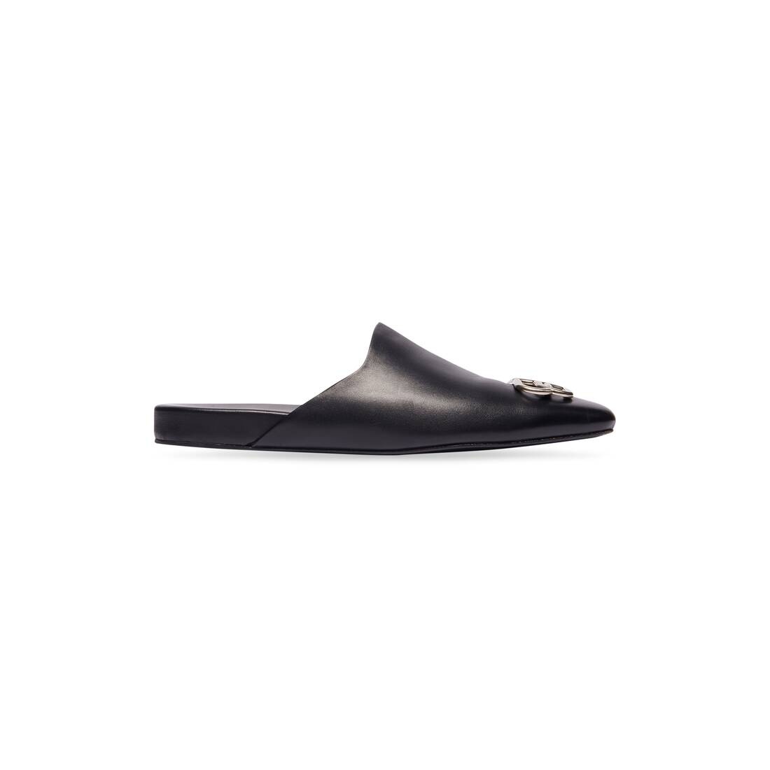 Cosy BB Mule in black smooth calfskin, semi-shiny palladium BB logo PRODUCT DETAILS • Smooth calfskin • Mule, open at back • Semi-shiny palladium hardware • BB logo at the upper • Tone-on-tone insole with embossed logo • Black sole • Made in Italy • Wipe with a soft cloth Material: 100% calfskin
