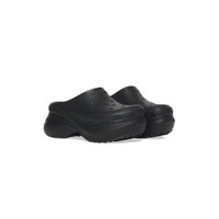 Crocs™ Mule in black rubber PRODUCT DETAILS • Rubber • Mule • Round toe • Open at back • 5mm arch • Balenciaga logo debossed on the upper • Embossed size at back • Tone-on-tone sole and insole • Made in China • Crocs™ collaboration • Wipe with a soft cloth Material: 100% EVA