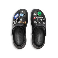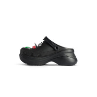 Crocs™ Mule in black rubber with Jibbitz™ charms PRODUCT DETAILS • EVA Foam • Mule • Round toe • Open at back • 5mm arch • Removable Jibbitz™ charms • Balenciaga logo embossed on strap • Debossed size at back • Tone-on-tone sole and insole • Made in China • Crocs™ collaboration Upper: EVA - Sole: EVA - Insole: EVA