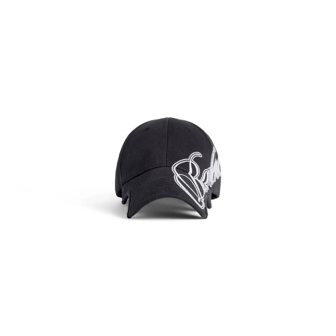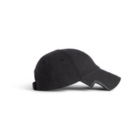 Cursive Cap in washed black cotton drill PRODUCT DETAILS • Cotton drill • Classic baseball cap shape • Ventilation eyelets embroidered on top • Adjustable hook and loop tab at back • Visor cut out on both sides • Cursive artwork on left side • Made in Italy Main material: 100% cotton