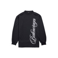 Cursive Long Sleeve T-Shirt Large Fit in washed black and white dry jersey PRODUCT DETAILS • Dry jersey • Crewneck • Long sleeves • Gathered cuffs • Cursive artwork embroidered at front • Made in Portugal Main material: 100% cotton
