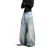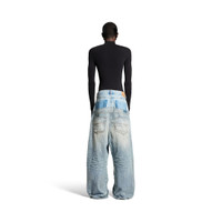 Cut-Up Baggy Pants in blue denim PRODUCT DETAILS • 3 different cotton denim panels • This item is unisex • Covered button fly • 5 belt loops • Double 5 pockets • Balenciaga engraved flex buttons • Balenciaga jeans worn-out paper jacron at back • Trompe l'oeil effect • Made in Italy Main material: 100% cotton - Pocket lining: 65% cotton, 35% cotton