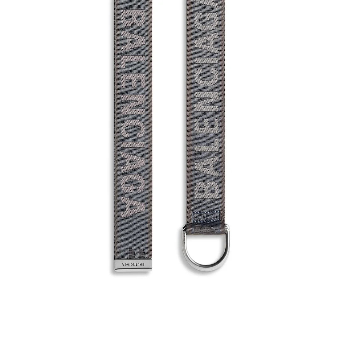 D Ring Belt in blue webbing PRODUCT DETAILS • Dimensions: Width: 1,4 inch • Webbing • Jacquard Balenciaga logo • Aged-silver hardware • Adjustable closure • Made in Italy • Wipe with a soft cloth Material: 100% polyester