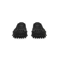 Defender Clog in black rubber PRODUCT DETAILS • Rubber • Clog • Slip-on • 20mm arch • Extreme tire tread sole • Balenciaga logo debossed at the edge of the toe, at back and on the upper • Written size on the upper and at the back of the heel • Made in China • Wipe with a soft cloth Material: 100% rubber