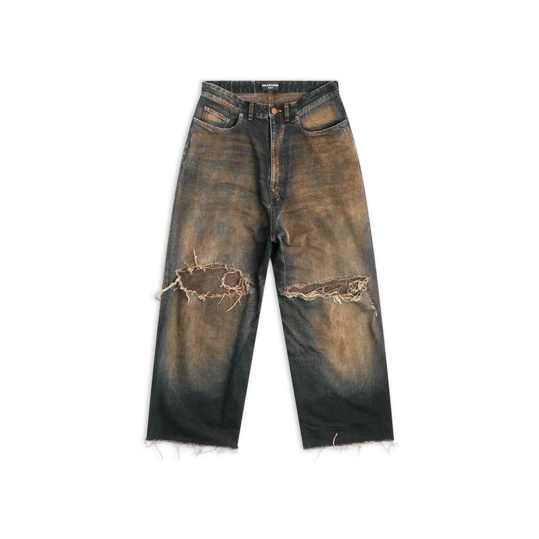 Destroyed Skater Jeans in dark blue Japanese denim is from the look 49 and 56 of the Balenciaga’s Summer 22, Red Carpet Collection. PRODUCT DETAILS • Japanese indigo denim • Unifit • Large fit • Mid-waist • Covered button fly • 5 pockets • 5 large belt loops • 2 belt tabs on sides to adjust waistline • Rippings and holes at knees and back • Balenciaga engraved flex buttons • Balenciaga Jeans leather patch at back • Destroyed finishings at bottom • Made in Japan • Dry cleaning • The model is wearing a size S Material: 100% cotton