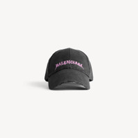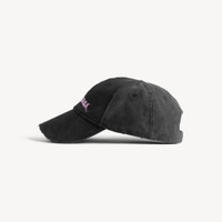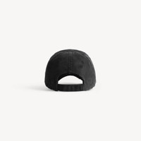 DIY Balenciaga Back Cap in black cotton drill PRODUCT DETAILS • Cotton drill • Worn-out details • Classic baseball cap shape • Ventilation eyelets embroidered on top • Adjustable hook and loop tab at the back • DIY Balenciaga Back artwork embroidered on the front • Made in Italy Main material: 100% cotton