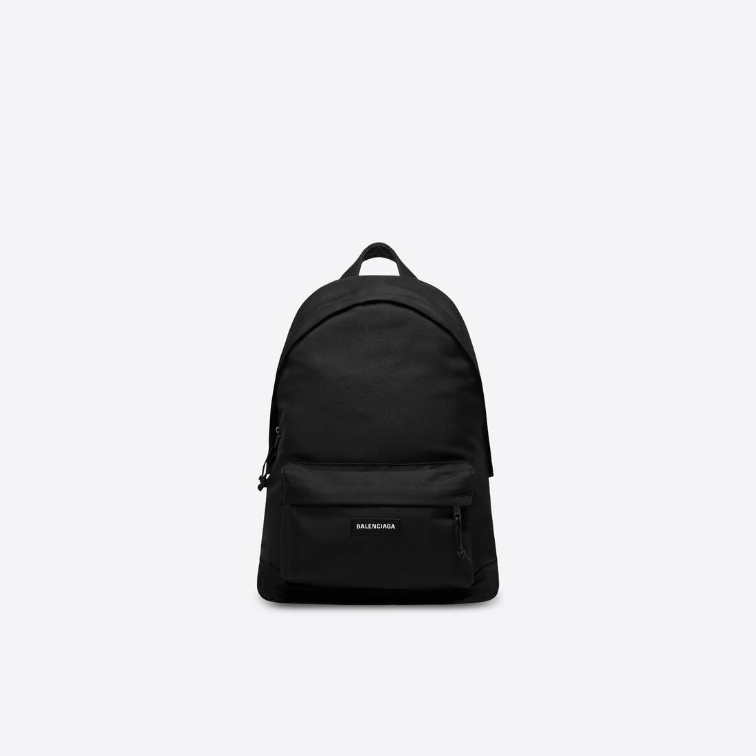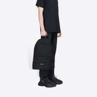 Explorer Backpack in black recycled nylon PRODUCT DETAILS • Dimensions : L18,5 x H13,7 x W7,8 inch • Nylon • Backpack • Top double-ended zip-fastening closure • Top handle • 1 inner zipped pocket • Adjustable shoulder straps • Balenciaga logo patch on front • BB engraved zipper puller with cotton string • Recycled nylon lining • Made in Italy • Wipe with a soft cloth Material: 100% polyamide