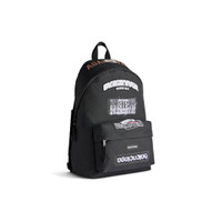 Explorer Backpack in black used recycled nylon PRODUCT DETAILS • Dimensions: L13,7 x H18,5 x W7,8 inch • Patches embroidered on used nylon • Backpack • One top handle • Adjustable shoulder straps • Balenciaga logo patch at front • Matte black hardware • Top double-ended zip-fastening closure • Front zipped pocket • 1 inner zipped pocket • 1 inner patch pocket • BB logo engraved zipper puller with cotton string • Cotton canvas lining • Made in Italy polyamide, polyester