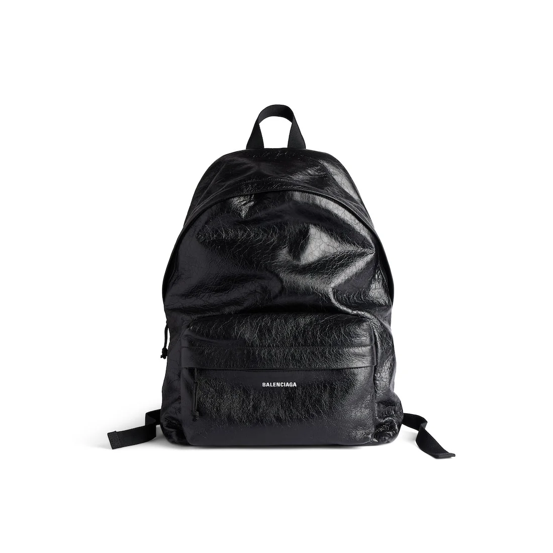 Explorer Backpack in black Arena Lambskin PRODUCT DETAILS • Dimensions: L13,7 x H18,5 x W7,8 inch • Arena lambskin • Backpack • Adjustable shoulder straps • 1 top double-ended zip-fastening closure • 1 top handle • 1 front zipped pocket • 1 inner zipped pocket • 1 inner patch pocket • BB engraved zipper puller with cotton string • Dark silver-toned hardware (brass) • Front white printed logo • Made in Italy • Wipe with a soft cloth Material: 70% lambskin, 20% nylon, 10% polyester