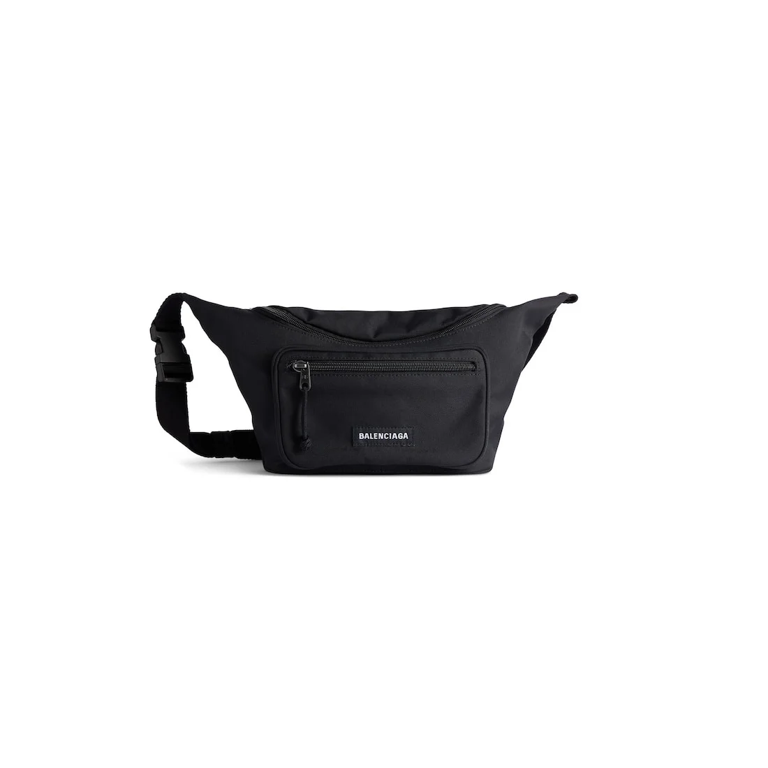 Nylon casual belt bag PRODUCT DETAILS • Dimensions : L15,7 x H7 x W3,9 inch • Nylon belt bag • Adjustable belt • Front stitched Balenciaga label • Front zip pocket • Made in Italy • Wipe with a soft clean cloth Material: 95% polyamide, 5% polyester