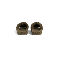 Furry Slide Sandal in army green synthetic material, white and red political campaign artwork embroideries PRODUCT DETAILS • Polyester • Slide sandal • Embroidered Balenciaga political campaign artwork • Tone-on-tone sole • Black outsole • Made in Italy Upper: polyester - Sole: TPU - Insole: polyester