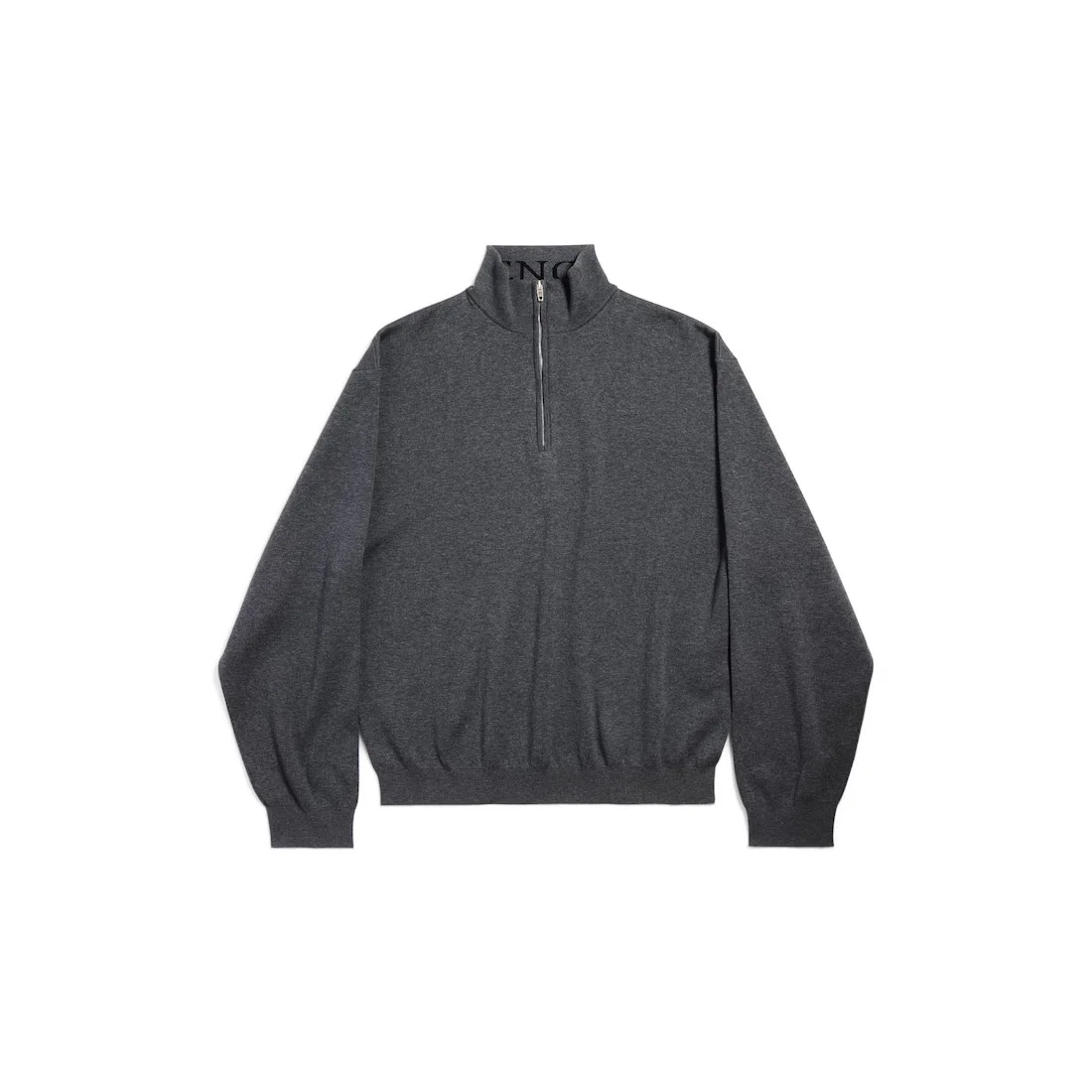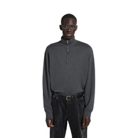 Half-Zip Sweater in grey cotton camionneur knit for Men. PRODUCT DETAILS • Organic cotton knit • Half-zipped front, trucker-neck sweater • High neck • Dropped shoulders • Long sleeves • Made in Italy Main material: 100% cotton