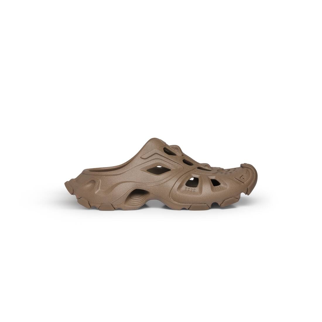 HD Mule in dark beige rubber PRODUCT DETAILS • Rubber • Mule • Open at back • Balenciaga logo embossed at the edge of the toe • Embossed size on the upper • HD branding on the upper • Molded sole and upper • Made in China • Wipe with a soft cloth Material: 100% EVA