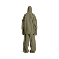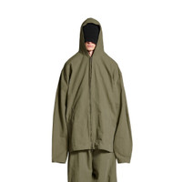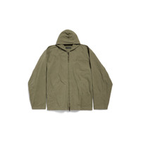 Hooded Zip-Up Jacket in green heavy cotton is from look 27 of Balenciaga Winter 24 Collection. PRODUCT DETAILS • Heavy cotton • This item is unisex • Hood without drawstrings • Zipped front • 2 slash pockets at front • Extra long sleeves • Drawstring at waistline • Made in Italy Main material: 100% cotton