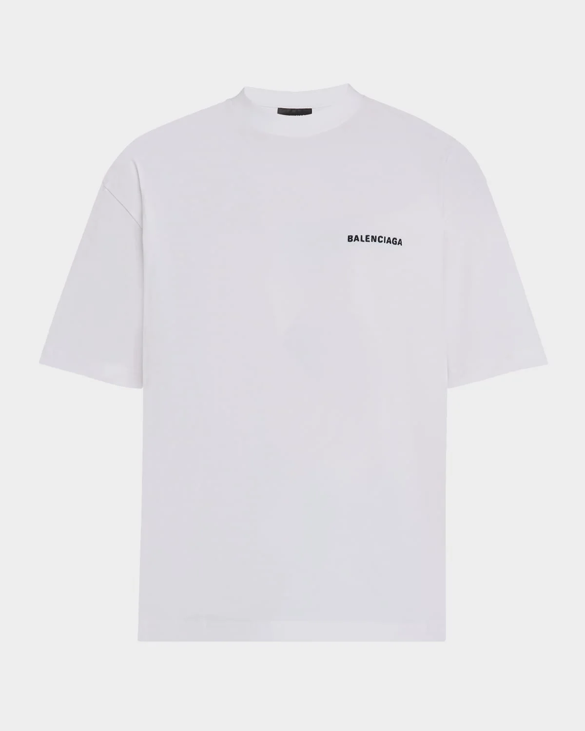 Balenciaga jersey T-shirt with a vintage logo at chest and back Crew neckline Short sleeves Relaxed fit Pullover style Cotton Made in Italy