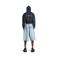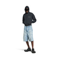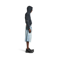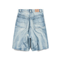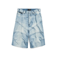 Knee Dart Shorts in light blue cotton denim PRODUCT DETAILS • Cotton denim • Mid-waist • Covered button fly • 5 belt loops • 5 pockets • Balenciaga engraved flex buttons • Balenciaga Jeans jacron at back • Raw-cut hem • Seams and knee darts • Made in Italy Main material: 100% cotton