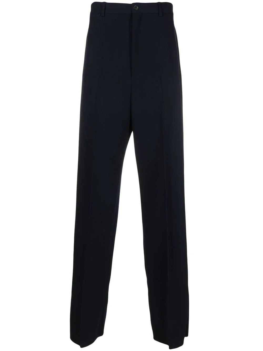 Large Fit Tailored Trousers in dark blue stretch wool twill are from the look 6 of the Balenciaga's Spring 23 Collection, NYC Show. PRODUCT DETAILS • Stretch wool twill • Large fit • Mid-waist • Covered zip fly • 6 belt loops • 2 slash pockets at front • 1 buttoned pocket at back • Made in Italy • Dry cleaning • Model is 185 cm / 6'1'' and is wearing a size 46 Material: 98% virgin wool, 2% elastane