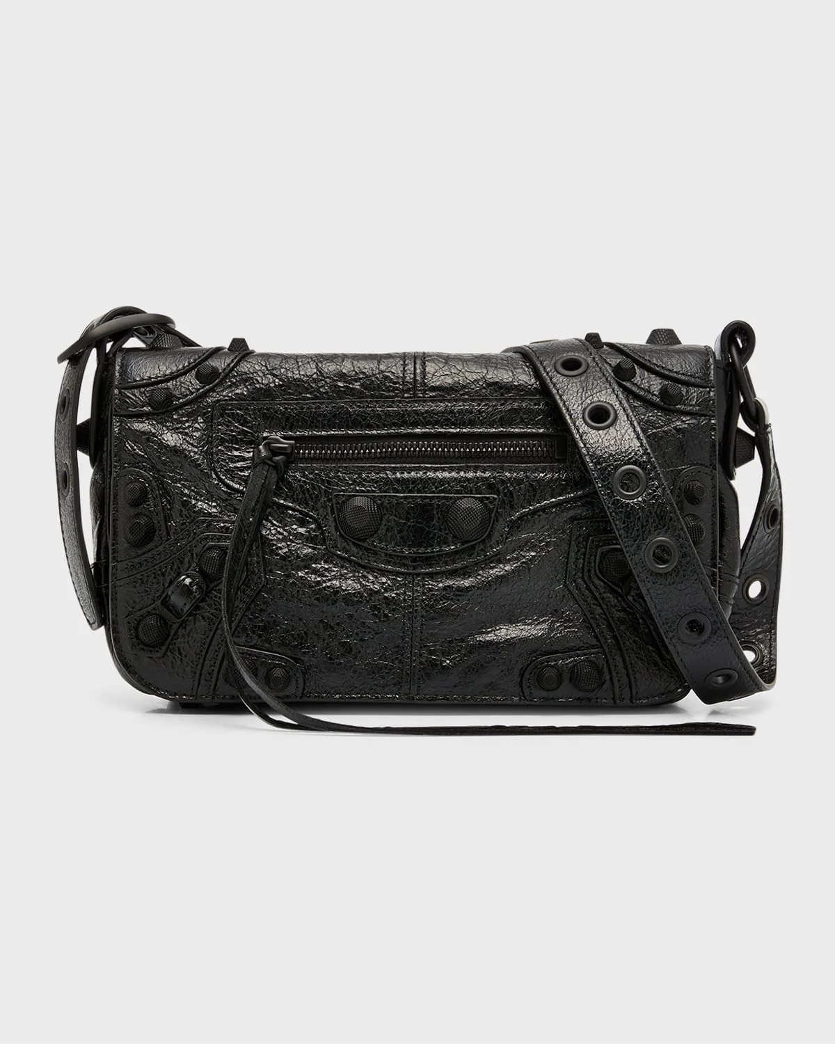 - Dimensions: L9,4 x H5,5 x W1,9 inch - Arena lambskin - Flap bag - Adjustable strap (22,8 inch) - Leather braided shoulder pad - Matte black hardware - Front zipped pocket with knotted leather puller - Flap closure with magnet - 1 inner zipped pocket - Back pocket with knotted leather puller - 1 removable zipped pouch - 1 removable EarPods holder to fit AirPods Pro - Balenciaga logo embossed on EarPods holder - Cotton canvas lining - Made in Italy - Wipe with a soft cloth