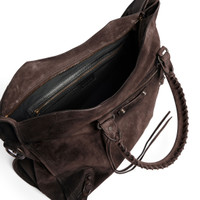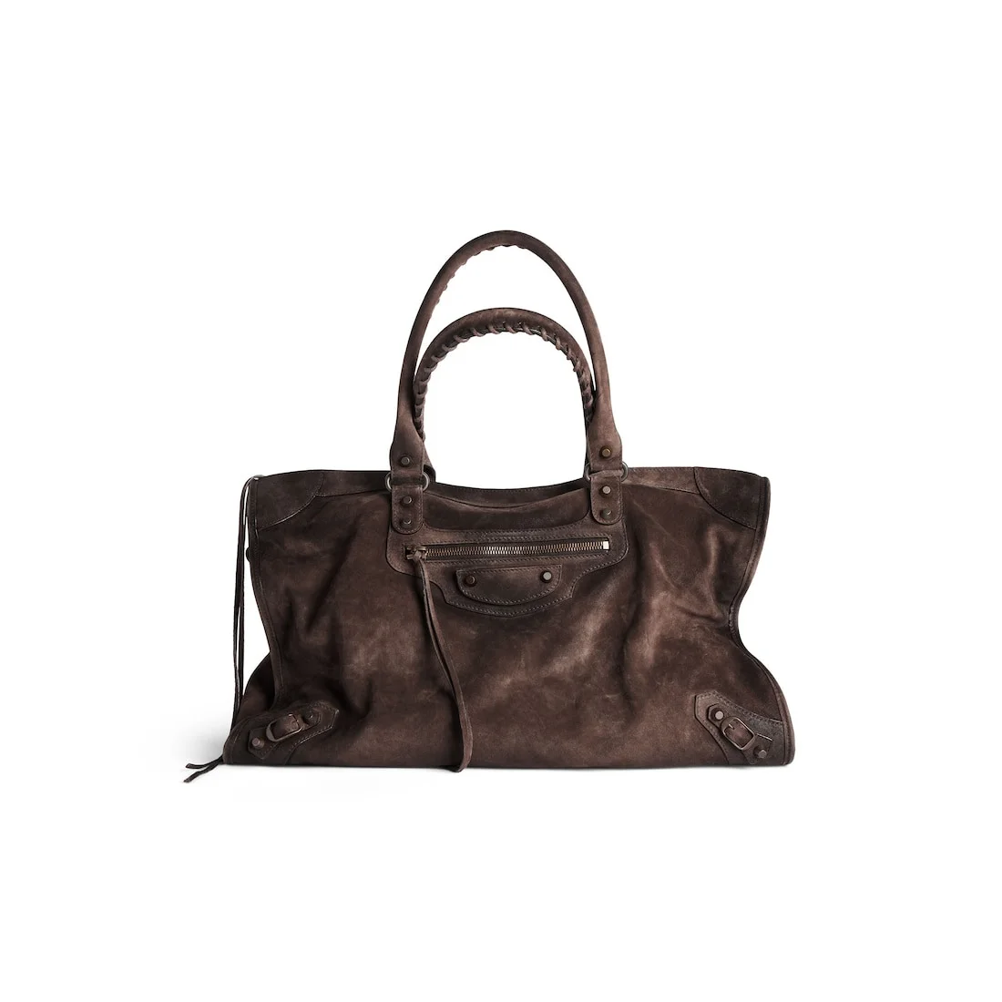 Le City Bag Large in light espresso waxed suede calfskin, brass hardware PRODUCT DETAILS • Dimensions: L18,1 x H11,4 x W6,5 inch • Waxed suede calfskin • Two hand-braided handles • Adjustable and removable shoulder strap (drop: 14,1 inch) • Brass hardware • Zipped closure with knotted leather puller • Front zipped pocket with knotted leather puller • 1 inner zipped pocket • Cotton canvas lining • Made in Italy Material: calfskin, cotton