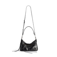 Le City Moto Small in black Arena Storico lambskin, brass hardware PRODUCT DETAILS • Dimensions: L11 x H7,5 x W5,5 inch • Arena Storico lambskin • One removable shoulder strap (drop: 7,8 inch) • Adjustable and removable strap (drop: 23,6 inch) • Crossbody and shoulder carry • Brass hardware • Zipped closure with knotted leather puller • Front zipped pocket with knotted leather puller • 1 main compartment • 1 inner zipped pocket • Cotton canvas lining • Made in Italy Material: lambskin