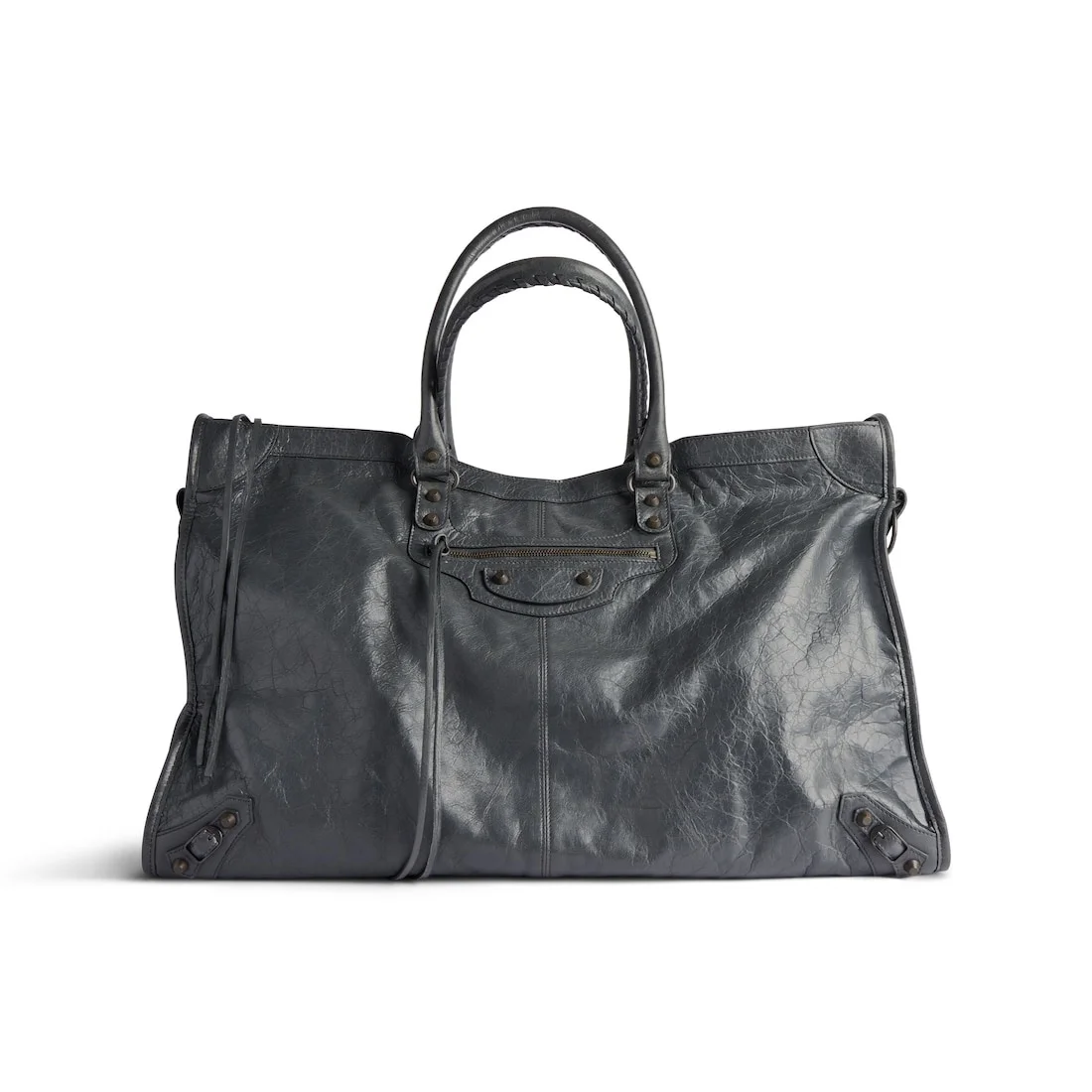 Le City Travel Bag in volcanic rock Arena Storico lambskin, brass hardware PRODUCT DETAILS • Dimensions: L21,6 x H13,8 x W7,9 inch • Arena Storico lambskin • Two leather hand-braided handles (drop: 7,9 inch) • Adjustable and removable shoulder strap (drop: 19,7 inch) • Brass hardware • Zipped closure with knotted leather puller • Front zipped pocket with knotted leather puller • 1 main compartment • 1 inner zipped pocket • Cotton canvas lining • Made in Italy Material: lambskin