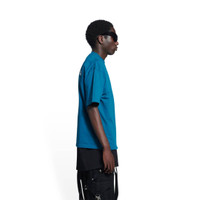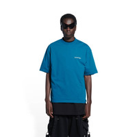 Logo T-Shirt Medium Fit in blue and white vintage jersey PRODUCT DETAILS • Vintage jersey • This item is unisex • Medium fit • Crewneck • Balenciaga logo embroidered at chest and back • Made in Portugal • Cold machine wash • Model is 187 cm / 6'13'' and is wearing a FR size S Material: 100% cotton