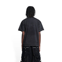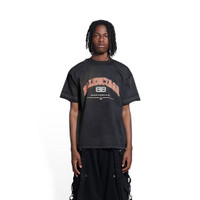 Maison Balenciaga T-Shirt Medium Fit in black, orange and white vintage jersey PRODUCT DETAILS • Vintage jersey • This item is unisex • Medium fit • Crewneck • Maison Balenciaga artwork printed at front • Rippings allover the fabric • Worn-out effect • Made in Portugal • Cold machine wash • Model is 184 cm / 6'03'' and is wearing a FR size S Material: 100% cotton