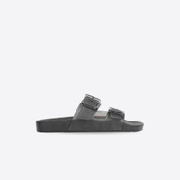 Mallorca Sandal in black clear technical polyurethane PRODUCT DETAILS • Clear polyurethane • Slide sandal • Two straps with two adjustable clear buckles • Molded footbeds • Balenciaga logo engraved on each buckle • Made in Italy • Wipe with a soft cloth Material: 100% polyurethane
