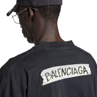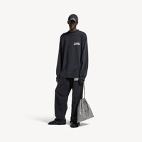 Masking Tape Long Sleeve T-Shirt Large Fit in faded washed black dry jersey PRODUCT DETAILS • Dry jersey • Crewneck • Long sleeves • Gathered cuffs • Masking tape artwork printed at front and back • Made in Portugal Main material: 100% cotton