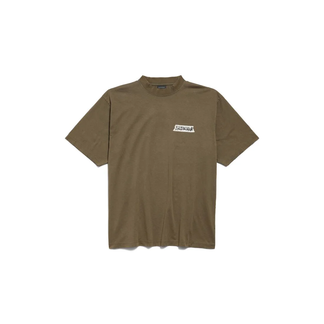 Masking Tape T-Shirt Medium Fit in khaki dry jersey PRODUCT DETAILS • Dry jersey • Crewneck • Short sleeves • Masking tape artwork at front and back • Made in Portugal Main material: 100% cotton